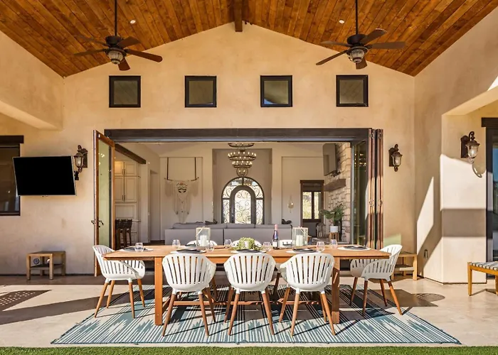 Escape to the serene beauty of Temecula with a romantic cabin rental nestled in the heart of wine country. Surrounded by lush vineyards and rolling hills, these cozy cabins offer the perfect setting for a romantic getaway. Disconnect from the hustle and bustle of everyday life and immerse yourself in the tranquil and peaceful surroundings. With their rustic charm and modern comforts, these cabins provide a unique and unforgettable experience for couples looking to unwind and reconnect with nature. Whether you're lounging on the porch with a glass of wine or snuggled up by the fireplace, these romantic cabin rentals in Temecula offer a magical and intimate retreat for any couple seeking a peaceful escape.